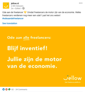 In de afgelopen weken hebben bijvoorbeeld NRC Media, T-Mobile, Hocras B.V., Dutch Seafood Company en diverse MKB’ers een opdracht gedeeld in Jellow.